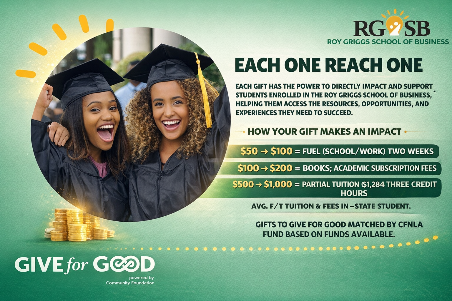 The Roy Griggs School of Business, Inc. (RGSB) is dedicated to empowering future business leaders and driving economic growth. Through scholarships, funding, and strategic partnerships, we support business education, certification training, and career exploration at Southern University at Shreveport (SUSLA) and other partnering institutions.